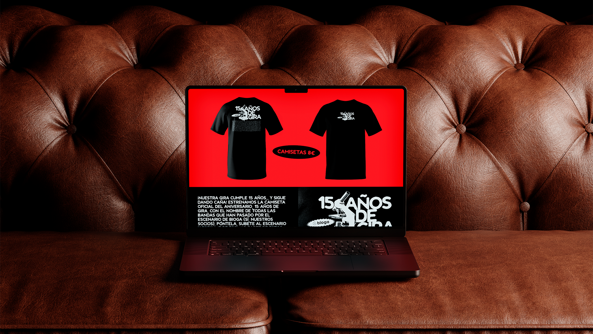 La identidad se desplegó de forma integral en el espacio, desde el escenario hasta los elementos de ambientación, el photocall y el merchandising, como la camiseta conmemorativa de los 15 años; cuidando cada detalle para reforzar el carácter festivo y diferencial del evento.